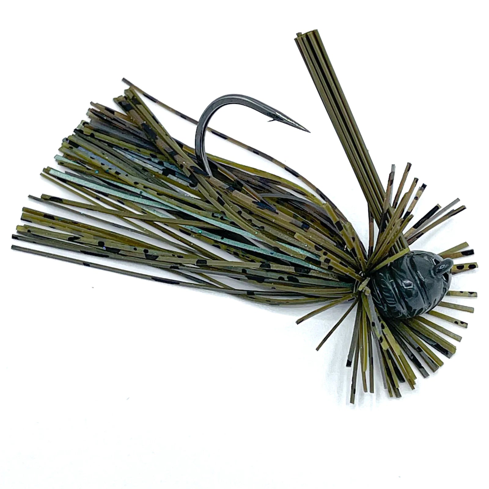 This unique traditional twist incorporates a smooth curved skipping head shape as well. Lastly, the recessed jig eye also enhances its ability to come through cover.